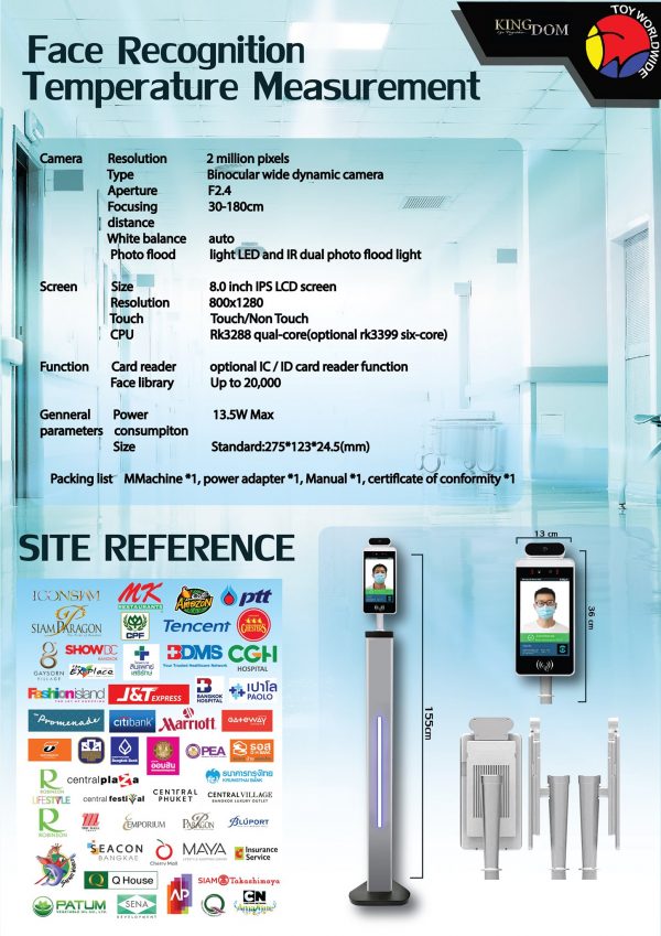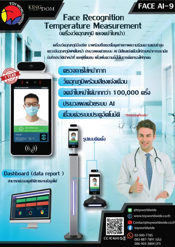 Be the first to review “KINGDOM-Face Recognition Infrared Thermometer อุปกรณ์ตรวจจับความร้อน วัดไข้ วัดอุณหภูมิ(FACE AI-9)” Cancel reply