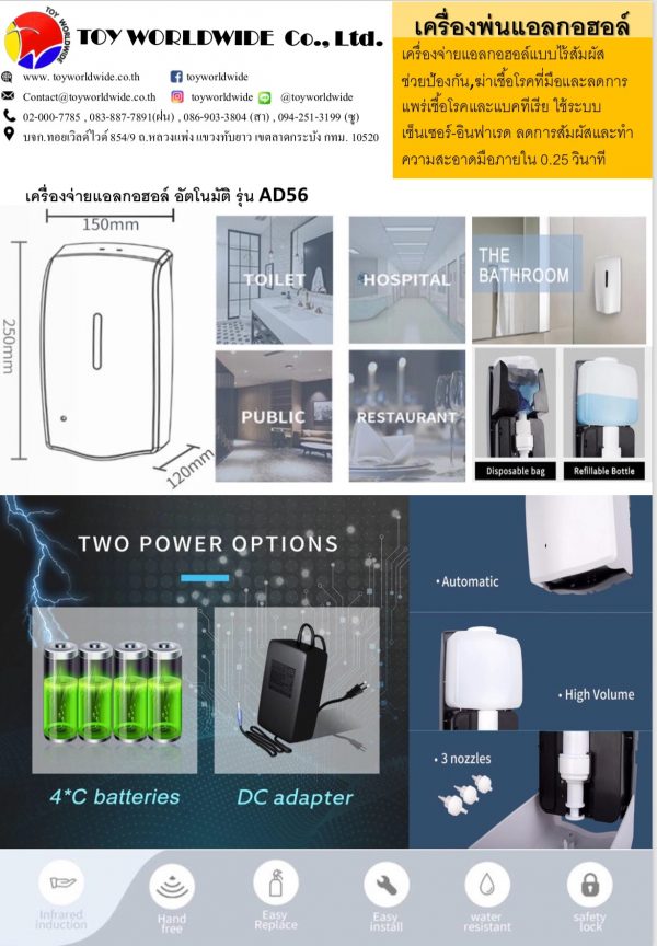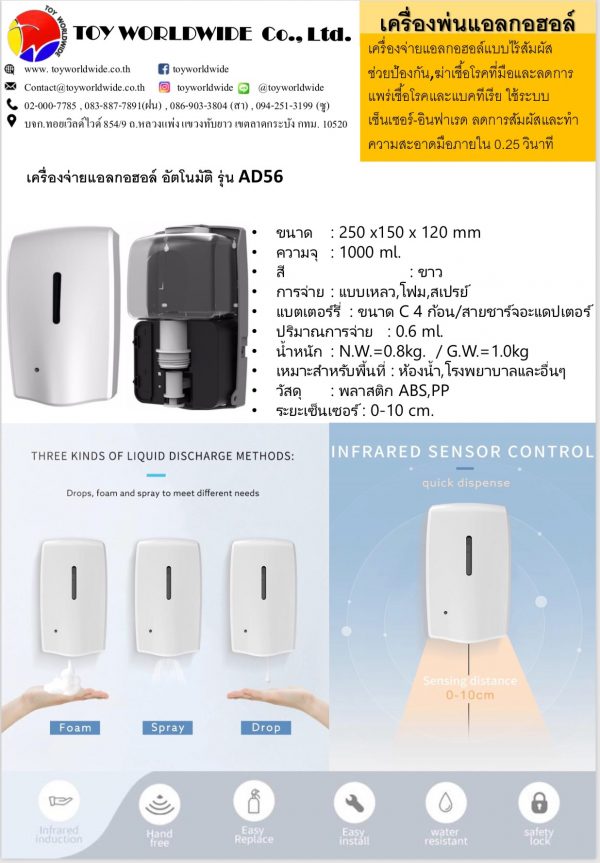 Toyworldwide-เครื่องจ่ายสเปรย์แอลกอฮอล์ฆ่าเชื้ออัตโนมัติ (AD56)